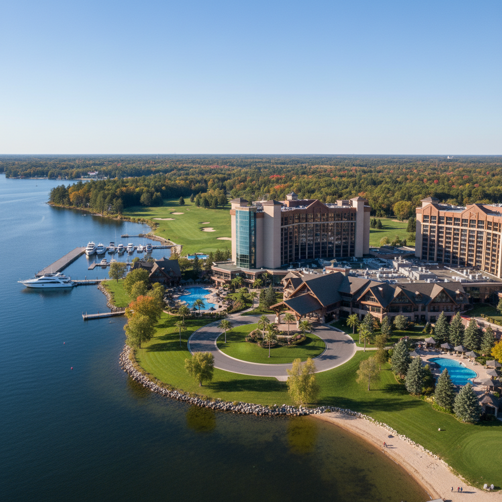 Nestled in the heart of Michigan, Soaring Eagle Casino & Resort represents the pinnacle of Midwest gaming and hospitality, offering a comprehensive resort experience that celebrates both Native American heritage and contemporary luxury. This impressive Saginaw Chippewa tribal gaming establishment features a vast casino floor with over 4,300 slot machines, 60 table games, and dedicated poker and bingo facilities that provide diverse gaming entertainment options for visitors from across the region. The resort's hotel accommodations include over 500 rooms and suites designed with comfort and luxury in mind, many featuring views of the surrounding Michigan countryside and the resort's beautifully maintained grounds. The entertainment program is particularly strong, with multiple venues including the 2,400-seat Entertainment Hall that hosts major concerts, comedy shows, and special events throughout the year, as well as more intimate spaces for smaller performances and gatherings. The dining options are diverse and impressive, featuring everything from casual sports bar fare to upscale restaurants that showcase both regional Michigan specialties and international cuisine. The resort's recreational amenities include a championship golf course, full-service spa and salon, and extensive indoor water park that provides year-round family entertainment regardless of Michigan's sometimes challenging weather conditions.
