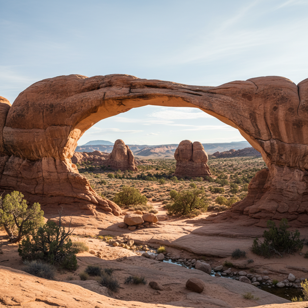 Arches National Park protects over 2,000 natural stone arches within its 76,679 acres of high desert landscape, creating the world's largest concentration of these geological wonders carved by millions of years of erosion in the red sandstone formations of southeastern Utah. Summer visitors can explore iconic formations such as Delicate Arch, Utah's most famous landmark featured on the state's license plate, which requires a moderate 1.5-mile hike across slickrock to reach this freestanding 65-foot-tall arch that frames the distant La Sal Mountains in a perfect natural window. The park's Windows Section provides easy access to North and South Windows, massive arches that can be viewed from short
