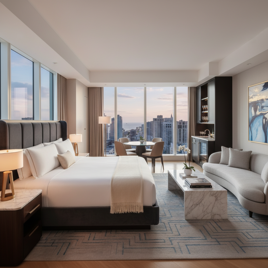Named after the Beanie Babies creator and hotel owner, the Ty Warner Penthouse at Four Seasons New York represents a unique fusion of artistic vision and luxury hospitality, commanding $50,000 per night for an experience that transforms accommodation into a living work of art. This 4,300-square-foot penthouse occupies the entire 52nd floor of the Four Seasons Hotel New York, featuring floor-to-ceiling windows that offer unobstructed views of Central Park, the Hudson River, and the Manhattan skyline, while the interior showcases an extraordinary collection of custom-designed furnishings and artistic elements. The suite's most striking feature is its hand-cut rock crystal chandelier, complemented by silk wall coverings, mohair carpets, and a grand piano, all carefully curated to create an atmosphere of refined elegance and artistic sophistication. Guests receive access to a dedicated concierge team that can arrange exclusive experiences throughout New York City, from private gallery viewings to backstage Broadway access, while the suite's amenities include a personal trainer, spa therapist, and chef who can create customized dining experiences using the finest ingredients from around the world. The penthouse's design incorporates elements of Zen philosophy and Eastern aesthetics, creating a peaceful retreat high above the city's energy, while advanced technology systems allow guests to control lighting, temperature, and entertainment systems with the touch of a button. The experience extends beyond the suite to include access to the hotel's award-winning spa, fitness center, and restaurant, while the Four Seasons' legendary service standards ensure that every detail of the guest experience is executed flawlessly, from arrival to departure.