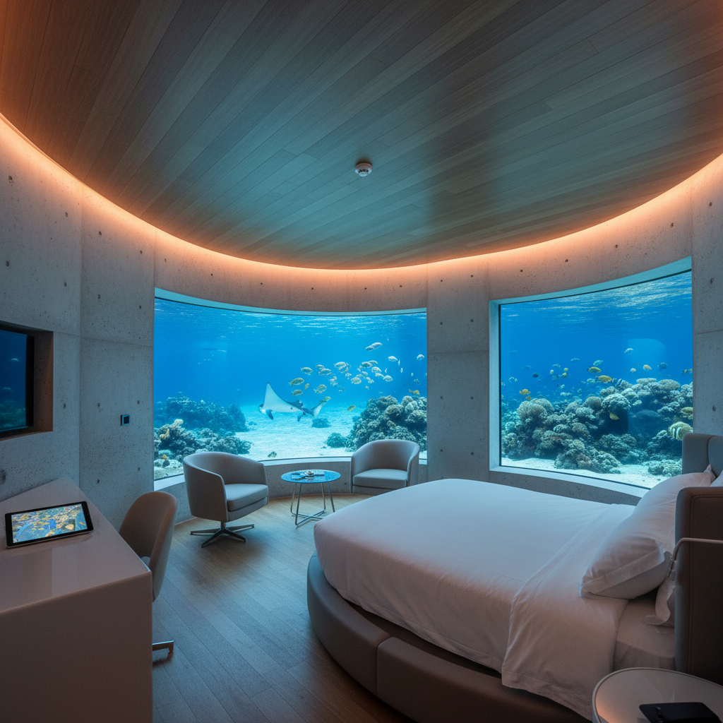 The Muraka, meaning "coral" in the local Dhivehi language, represents the epitome of architectural innovation and marine luxury, offering guests the unprecedented experience of sleeping beneath the Indian Ocean's crystal-clear waters. This two-level residence features a master bedroom submerged 16 feet below sea level, surrounded by floor-to-ceiling windows that provide 180-degree views of the vibrant coral reef ecosystem, where guests can observe sharks, rays, and countless tropical fish species in their natural habitat. The upper level houses additional bedrooms, a living area, kitchen, and infinity pool, while the lower level's underwater bedroom creates an otherworldly experience that feels more like science fiction than reality. At approximately $50,000 per night, The Muraka includes a dedicated team of staff, private speedboat transfers, and access to all resort amenities, making it one of the most exclusive accommodations on Earth. The experience extends beyond the unique sleeping arrangement to include private dining experiences on the deck, sunset dolphin cruises, and personalized spa treatments, all while being surrounded by one of the world's most pristine marine environments. The architectural marvel required years of planning and construction, utilizing specialized materials and techniques to ensure both guest safety and minimal environmental impact, making it a testament to sustainable luxury tourism.