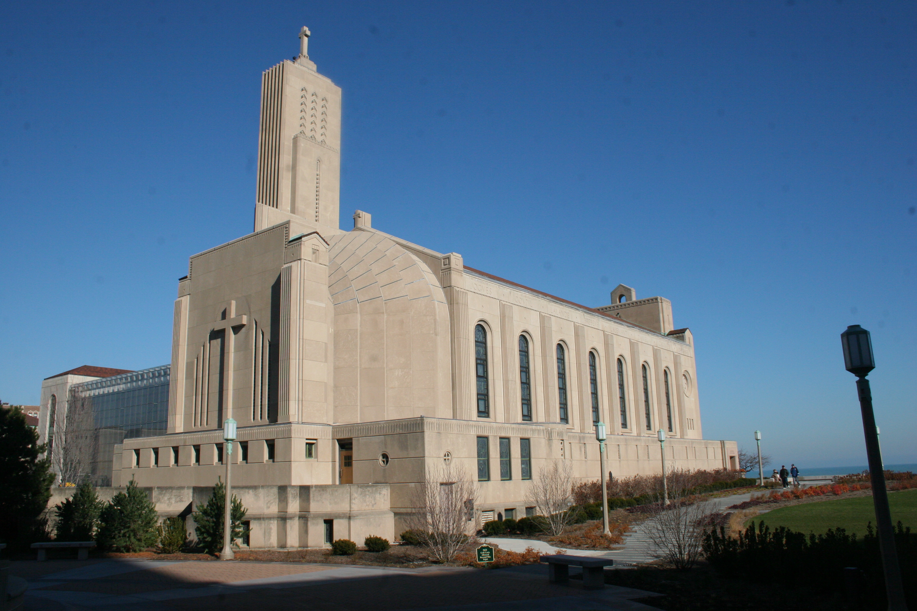 Located on the campus of Loyola University Chicago, Madonna Della Strada Chapel is a stunning example of Art Deco ecclesiastical design. Completed in 1939, this lakeside chapel boasts elegant geometric patterns, a soaring marble altar, and vibrant stained glass that blends classic and contemporary aesthetics. Nestled along the shores of Lake Michigan, the chapel offers breathtaking views, making it a perfect spot for reflection and serenity.